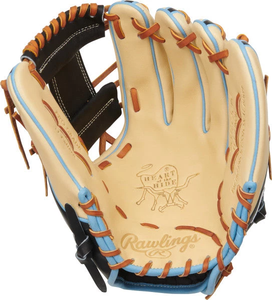This HOH infield glove’s popular 31-pattern is perfect for infielders who want lightning quick ball transfers to turn more double plays. Just like all of our Heart of the Hide gloves, this pro model also gives you the best in comfort and feel, thanks to its deer-tanned cowhide lining, padded thumb sleeve, and thermoformed wrist lining. This particular HOH also features a unique, three-tone camel, black, & Columbia blue design, and a pro I-web; the #1 choice of the game’s best infielders.