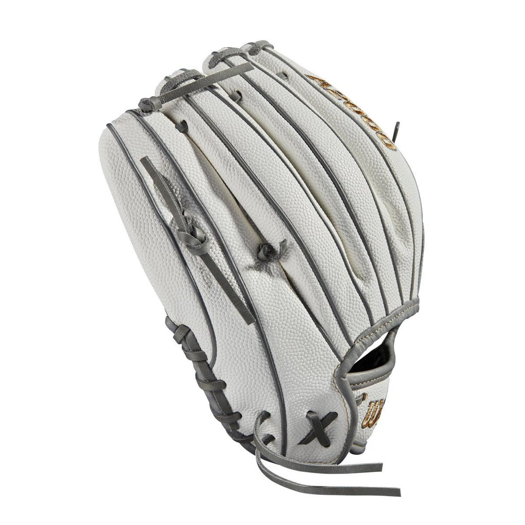 The 2021 A2000® H12SS is built to handle any play up the middle or at the hot corner. Featuring the iconic H-Web design and a shallow pocket, the A2000® H12SS makes transfers quick and easy. The Grey Pro Stock® Leather palm pairs with a White SuperSkin™ back to reduce glove weight while increasing durability. ComfortPro Lining with rich Pro Lux™ leather conforms to your hand over time, allowing for an incredible fit and feel.