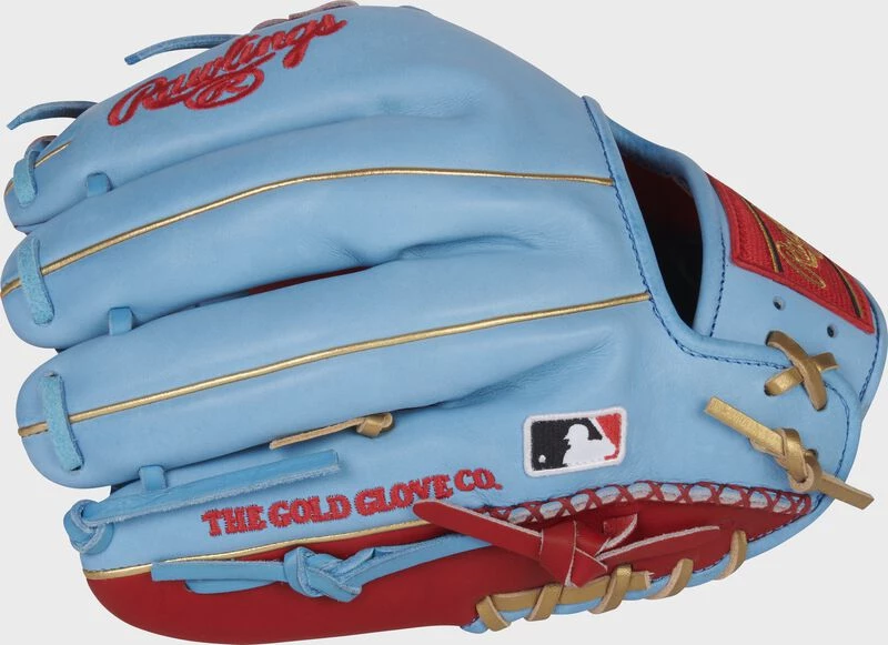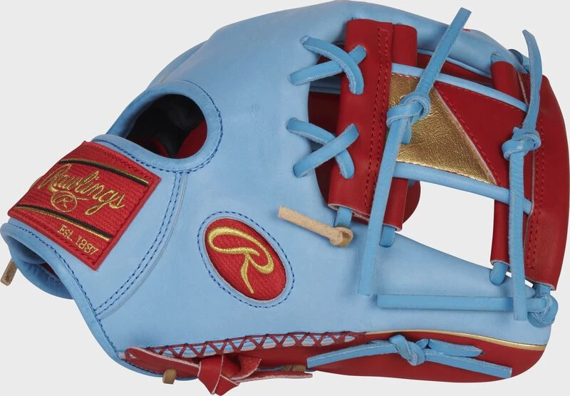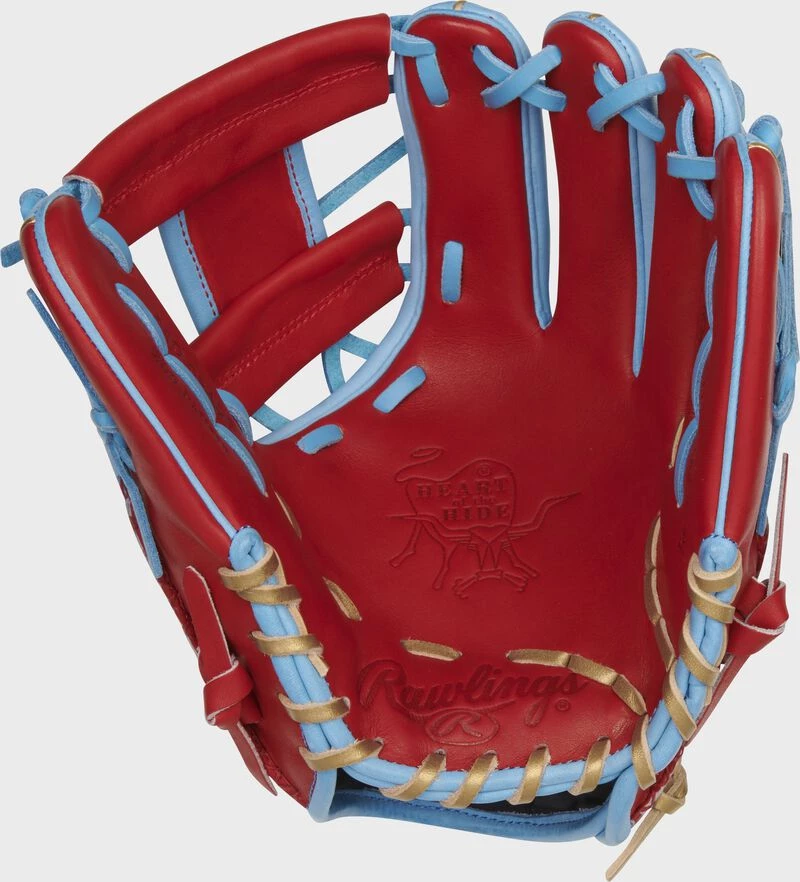 Add some color to your game with the 11.5-inch Heart of the Hide ColorSync 6.0 infield glove! Our glove designers crafted this gamer from our ultra-premium steer-hide leather, giving you superior quality and performance every inning out. On top of that, this glove turns heads with its design. The stylish Columbia blue & scarlet colorway comes with a unique two-tone scarlet and gold I-web too. It even has an ultra-rare red and gold Rawlings ColorSync patch to add the perfect finishing touch!