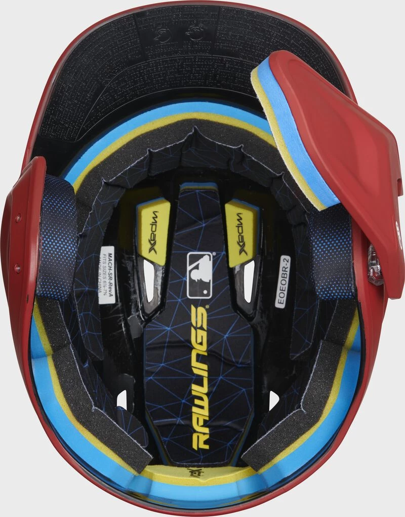 These Mach adjust batting helmets are also equipped with Impax foam padding which absorbs and disperses force, and withstands multiple impacts as well. In addition, the moisture wicking liner and wrapped jaw pads provide optimal comfort and fit too. Go to bat with greater confidence when you put on your Mach Adjustable helmet.