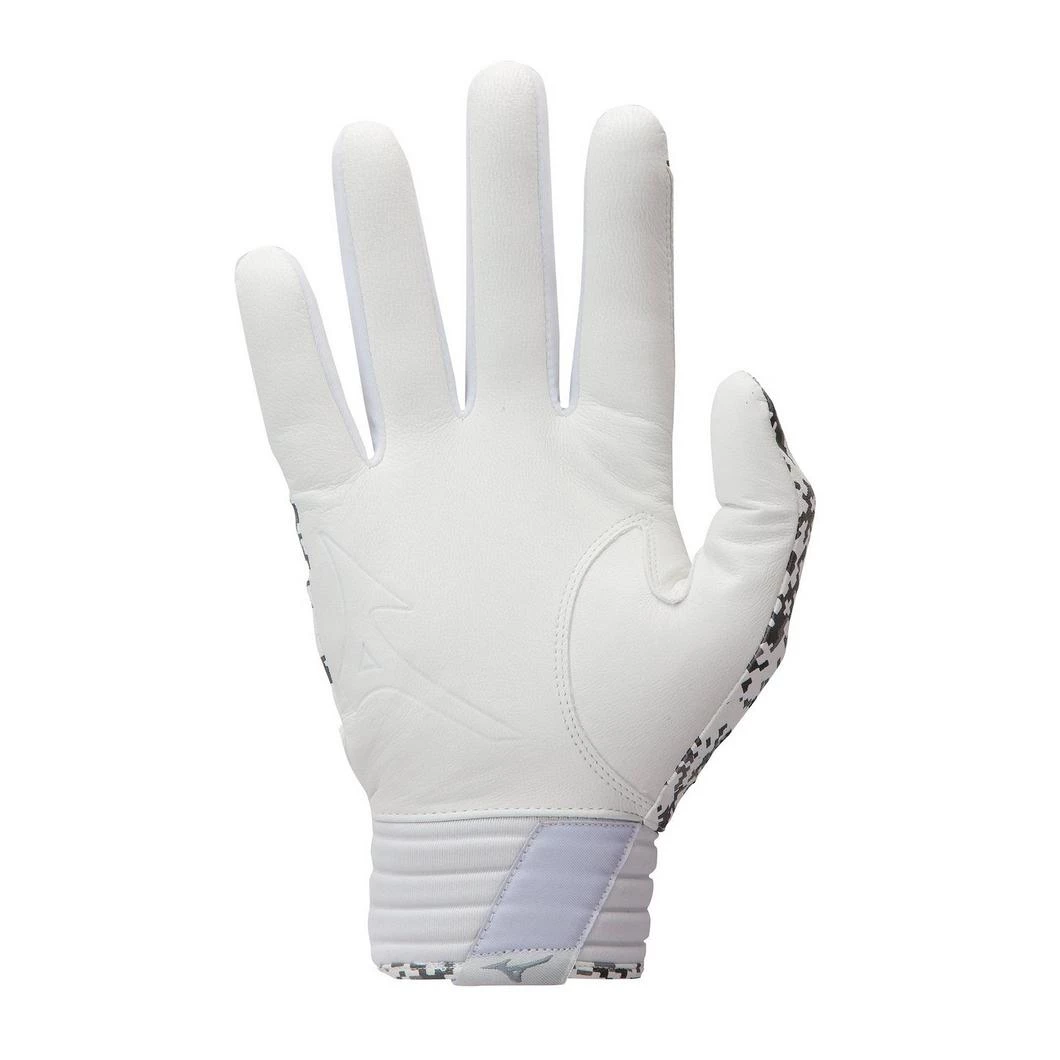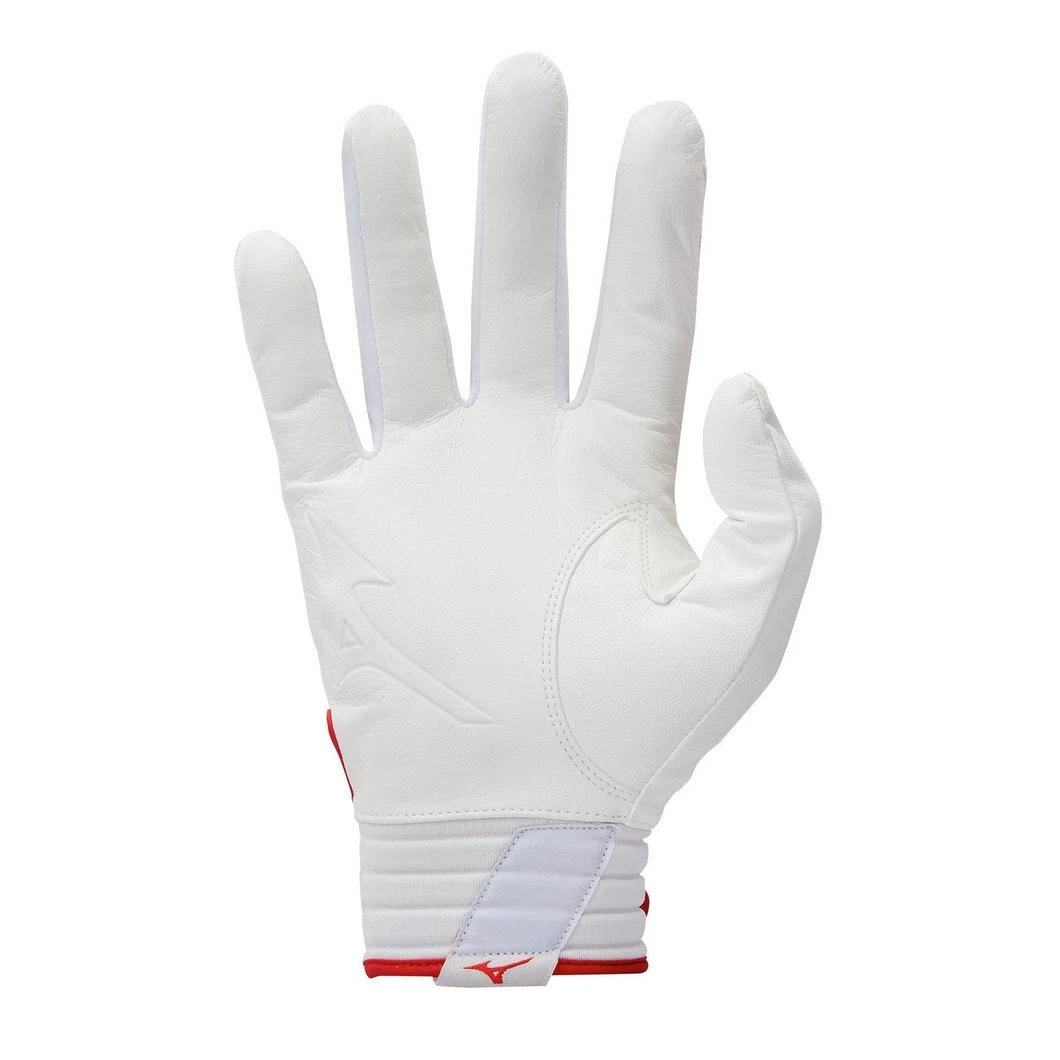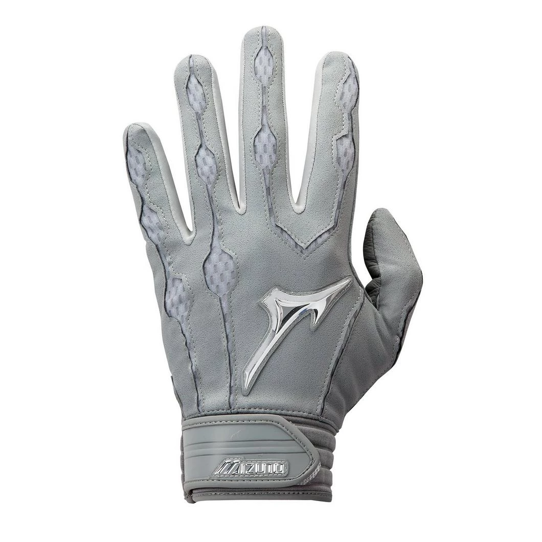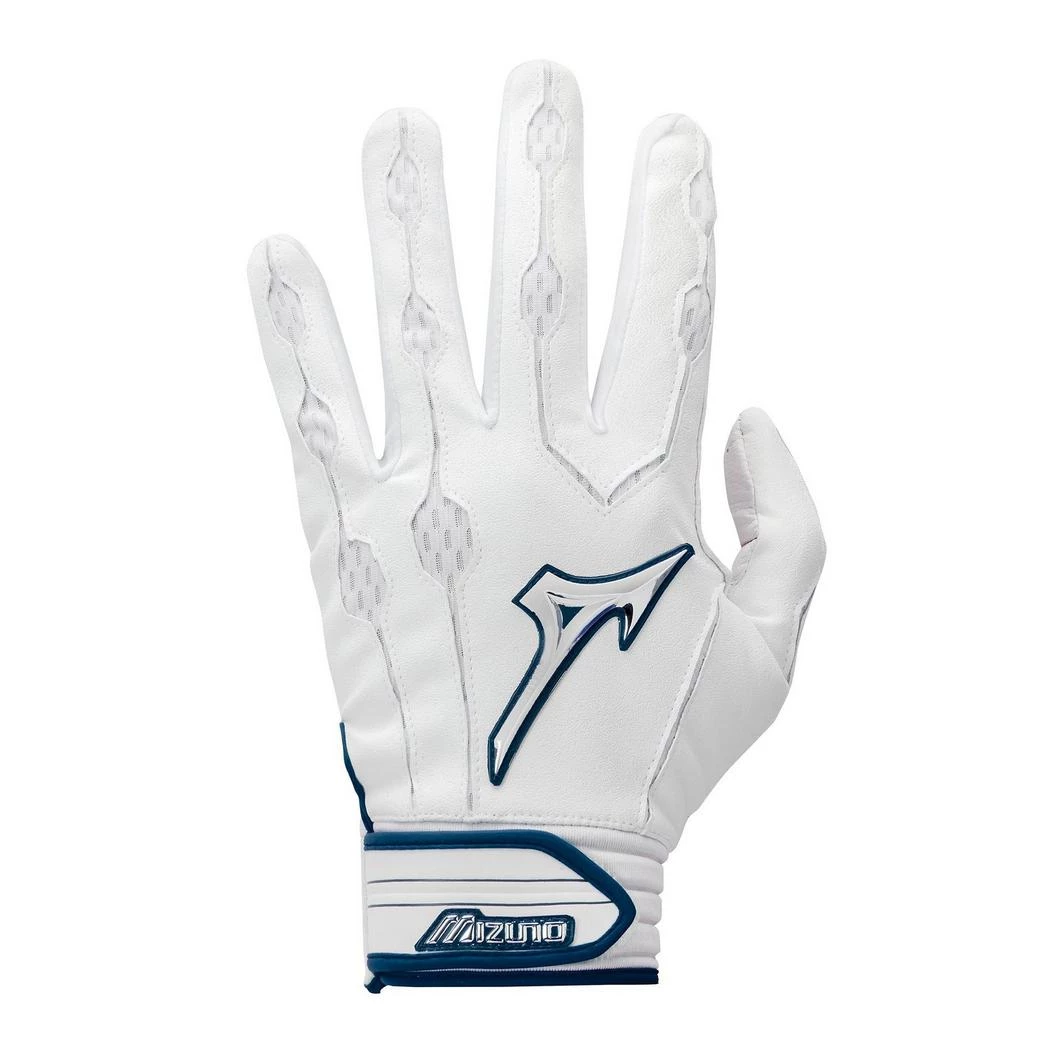 Leather palm used for combination of great feel with durability. Mizuno AirMesh™ utilized for maximum flex and breathability. QuikAdjust™ wrist tab molded pull tab for secure fit. 3-D chrome logo applications for rich professional look. Compression molded neoprene wristband with PNP™ (Personalized Number Plate) for player customization option.
