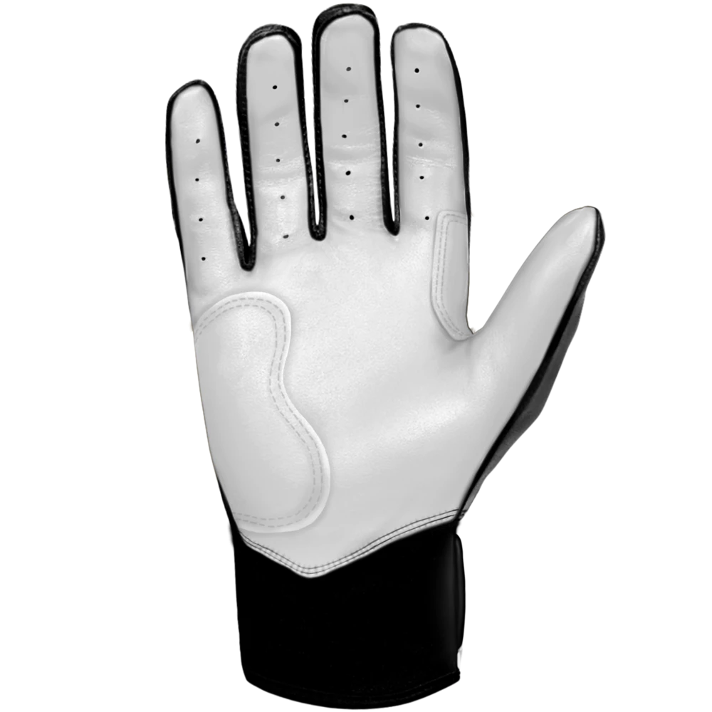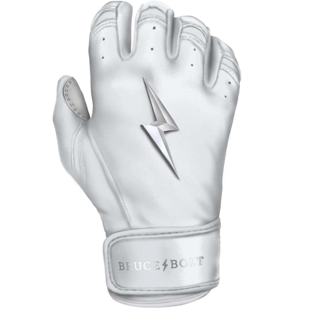 HIGHEST QUALITY, MOST DURABLE BATTING GLOVE IN BASEBALL: Each pair of BRUCE BOLT batting gloves are handmade by skilled craftsmen using only the highest quality 0.9mm Cabretta leather and stitching techniques which makes our gloves buttery soft but more durable than any other glove on the market.