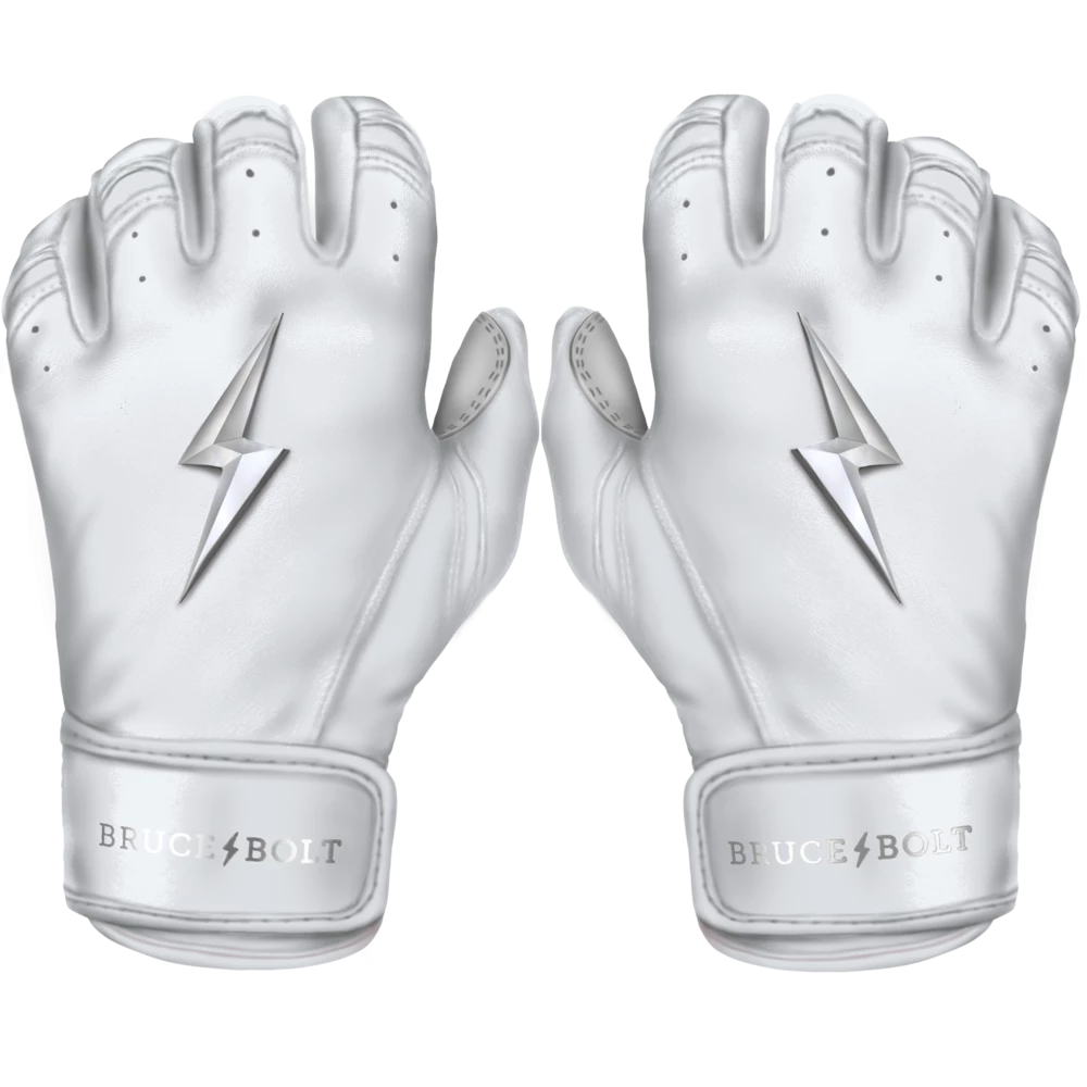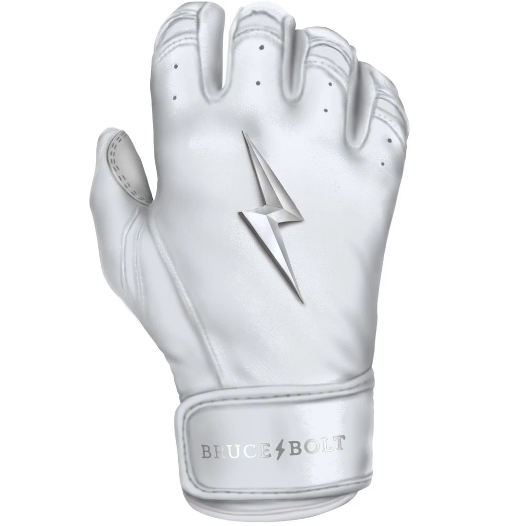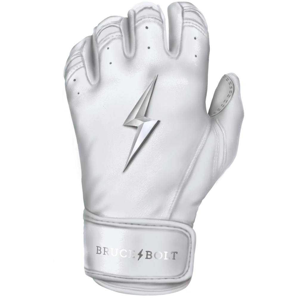 HIGHEST QUALITY, MOST DURABLE BATTING GLOVE IN BASEBALL: Each pair of BRUCE BOLT batting gloves are handmade by skilled craftsmen using only the highest quality 0.9mm Cabretta leather and stitching techniques which makes our gloves buttery soft but more durable than any other glove on the market.