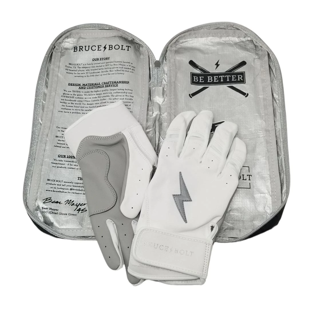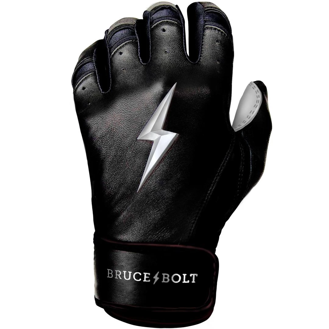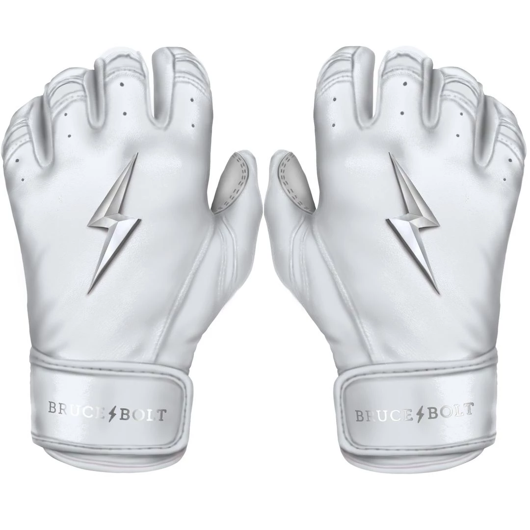 HIGHEST QUALITY, MOST DURABLE BATTING GLOVE IN BASEBALL: Each pair of BRUCE BOLT batting gloves are handmade by skilled craftsmen using only the highest quality 0.9mm Cabretta leather and stitching techniques which makes our gloves buttery soft but more durable than any other glove on the market.