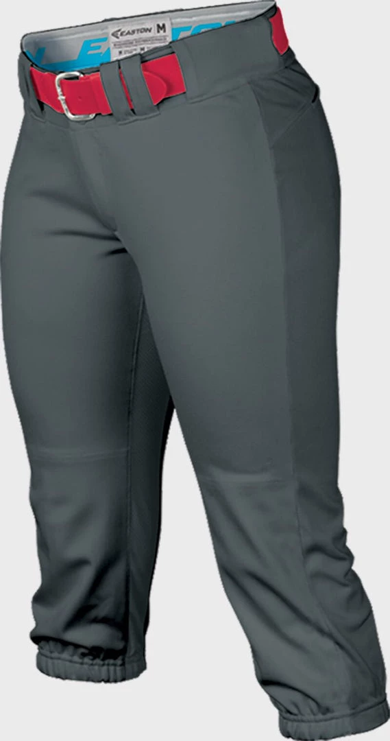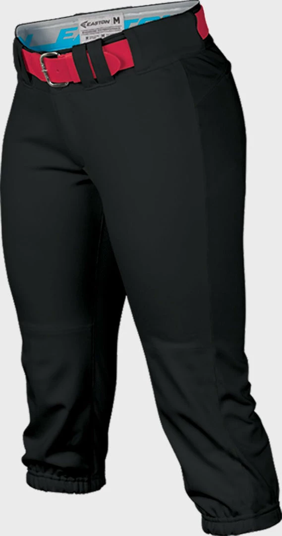 Show your prowess with Easton’s® Women’s Prowess™ Pant. Designed for female players, this pant is engineered with polyester-knit interlock fabric with four-way-stretch mesh crotch gussets for the ultimate fit, comfort and mobility. The Easton®-branded, two-color waistband has silicone grippers to keep your jersey in place, and double-reinforced knees with a custom-engineered cuff built to last.