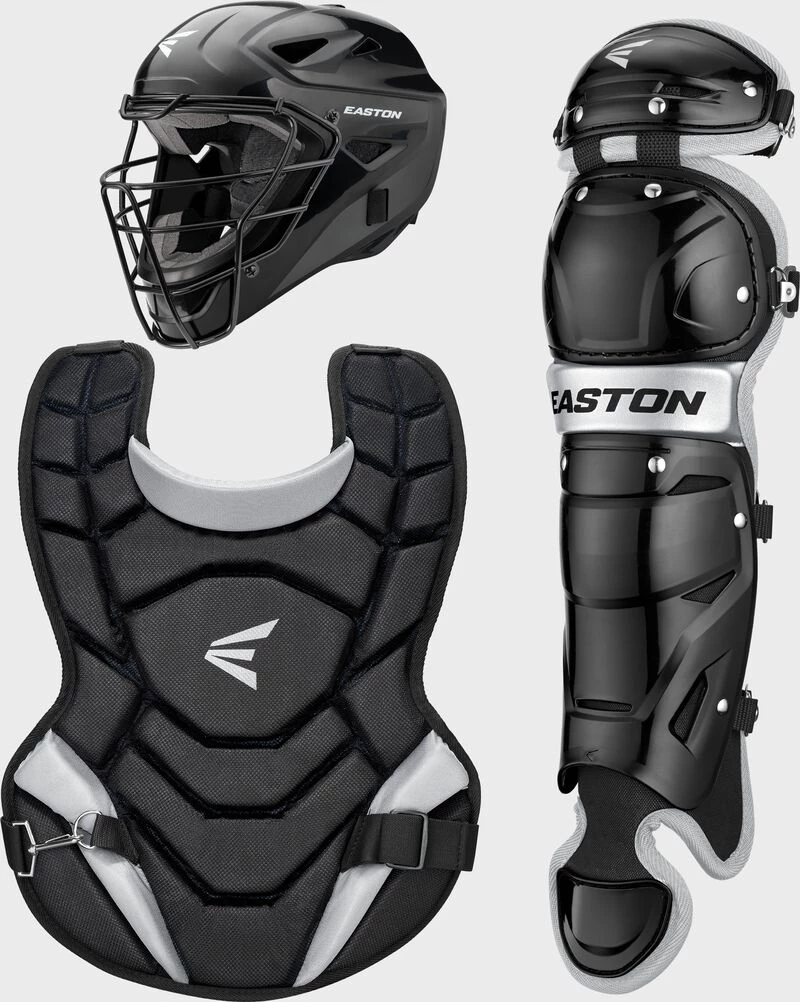 Easton’s® second-generation Black Magic 2.0 Box Set is perfect for the youth or beginner catcher. This Catcher’s set includes a hockey-style ABS Thermoplastic Shell Helmet with steel cage and dual-density foam, Chest Protector with foam padding for protection and Leg Guards with double-knee protection. Available in Youth and Junior Youth Sizes, BLACK ONLY.