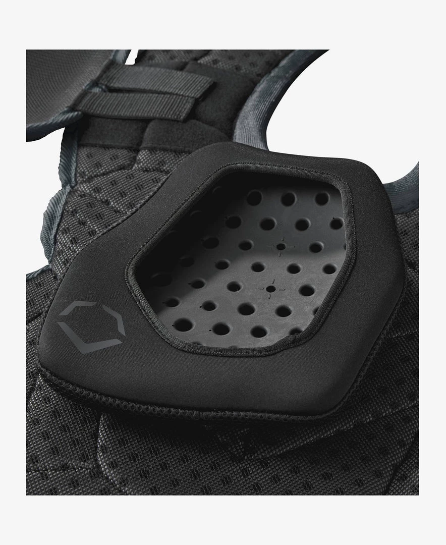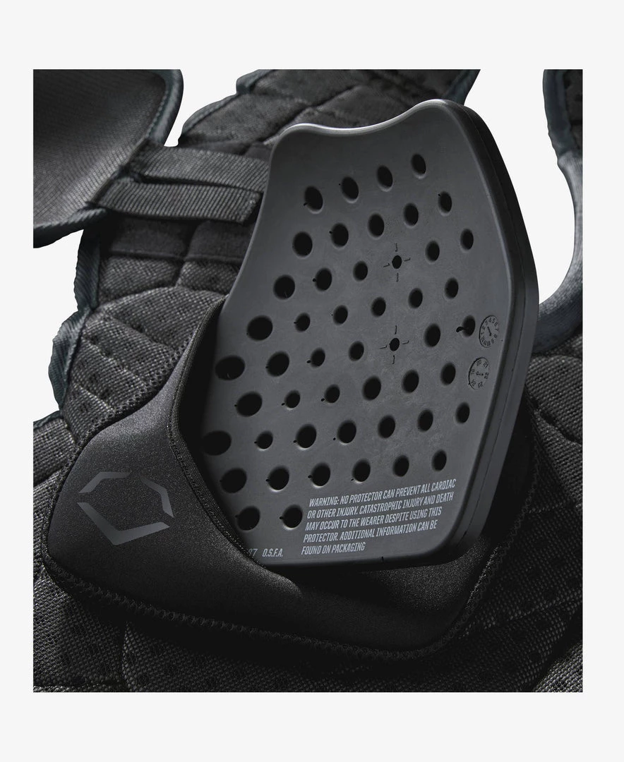 Leave the bulky, ill-fitting catcher’s gear you’re used to where it belongs – in the past. The all-new EvoShield Pro-SRZ™ Chest Protector is built for the modern catcher who refuses to sacrifice range of motion for protection behind the plate. The chest protector features the first-ever built-in NOCSAE certified guard to protect against Commotio Cordis. A moldable abdominal wire allows for a truly custom fit that keeps the protector close to your body, even when moving, while a magnetic Fidlock buckle allows for easy on/off between innings.