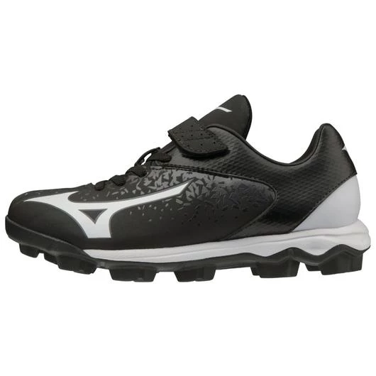 The Mizuno Select Nine JR is a top rubber molded youth cleat option suitable for all field types, while offering an EVA midsole for enhanced comfort and durability. Also features Mizuno Wave® technology to reduce pressure, while adding comfort and stability during athletic movements around the diamond. Features one Velcro strap and faux laces to add a convenient detail to do away with between-inning shoe tying!