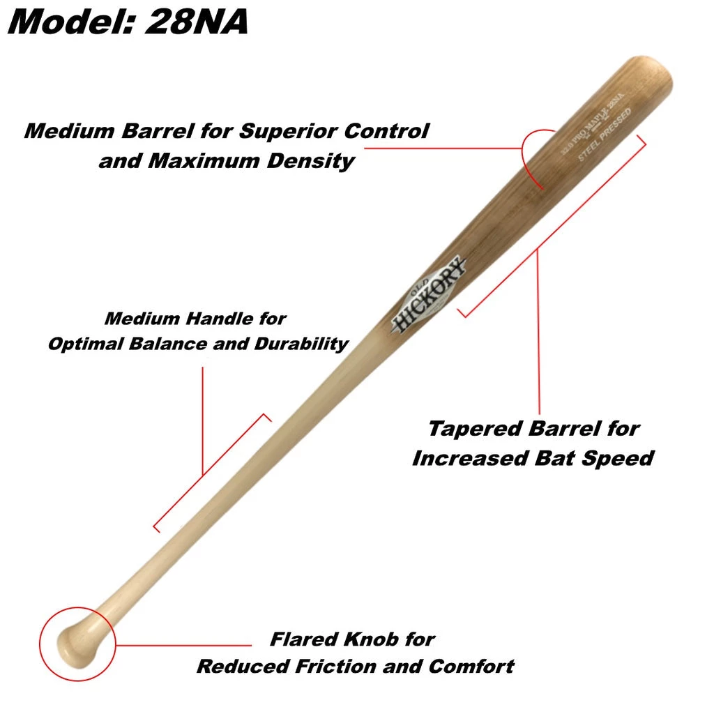 The Old Hickory 28NA is a hybrid model. Â It is a combination of the J154 barrel and the KG1 handle. The 28NAÂ has a medium barrel with medium taper that leads to a thin handle with a flared knob. Â This is one of the most balanced bats on the market and is Nolan Arenado’s bat of choice.