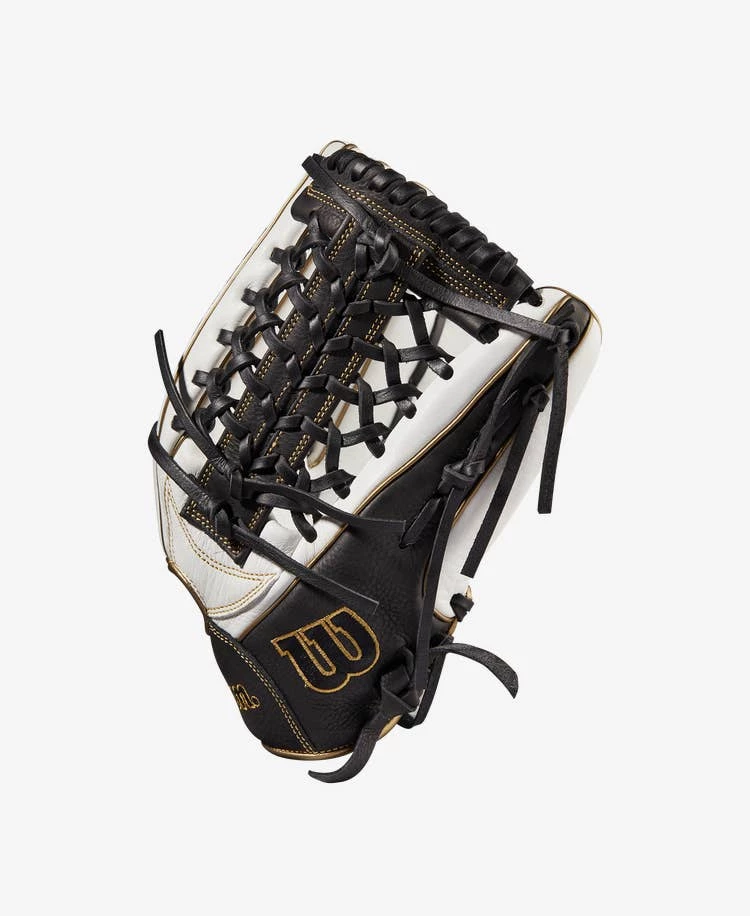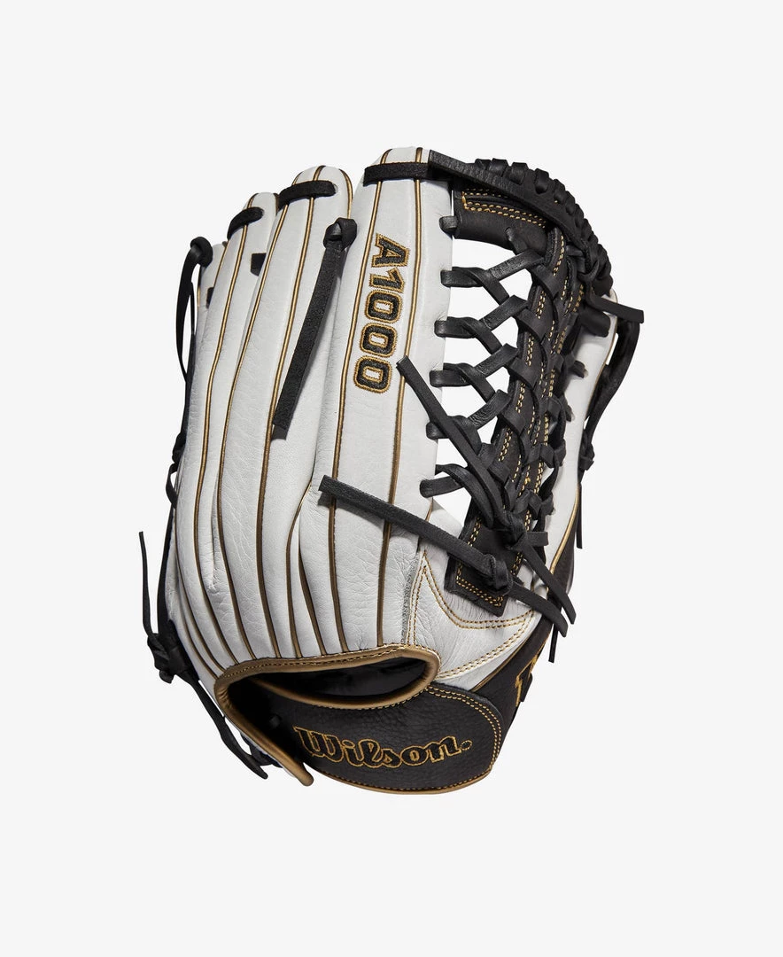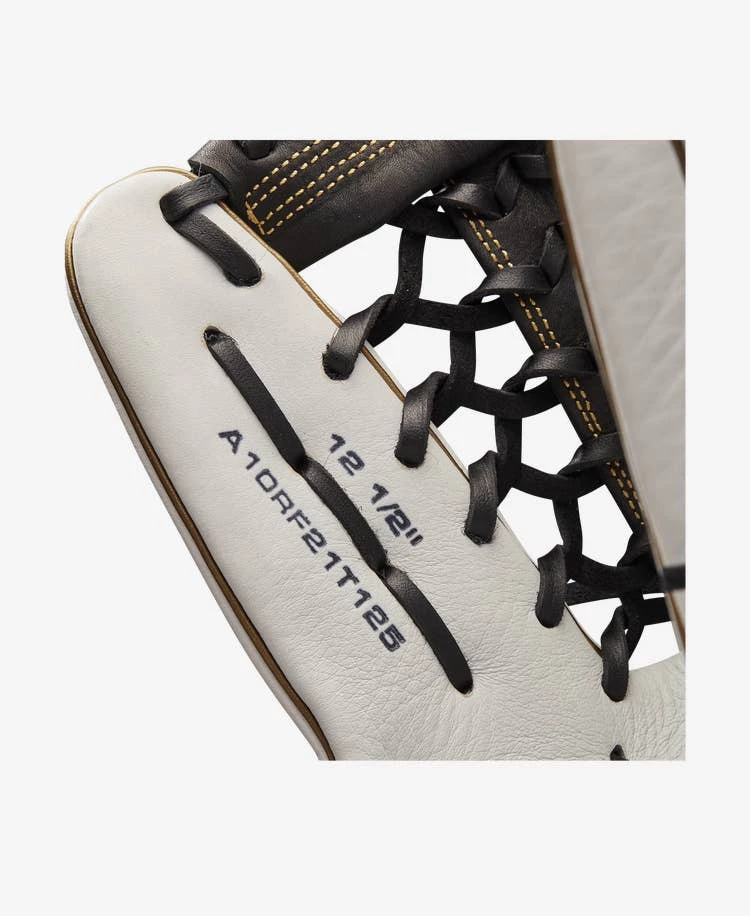 Cover every inch of the outfield grass with the extra reach of the A1000® T125 12.5” Fastpitch Outfield glove. The sturdy Black and White Full Grain leather allows for full extension on line drives in the gaps, and the Pro Laced T-Web forms the perfect pocket to allow for easy transfers.